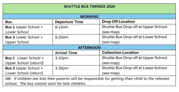 If you think you might need to use the shuttle bus service then please contact the school office by email and we can see if there is space available.